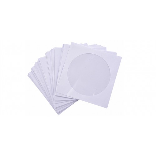 White CD/DVD Paper Sleeve Envelopes with Flap and Clear Window - 100pcs/Pack